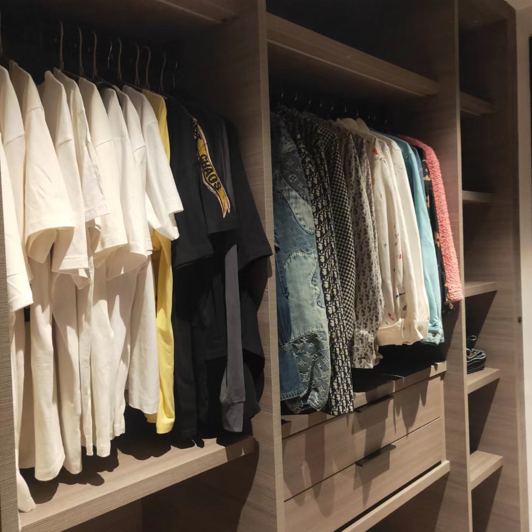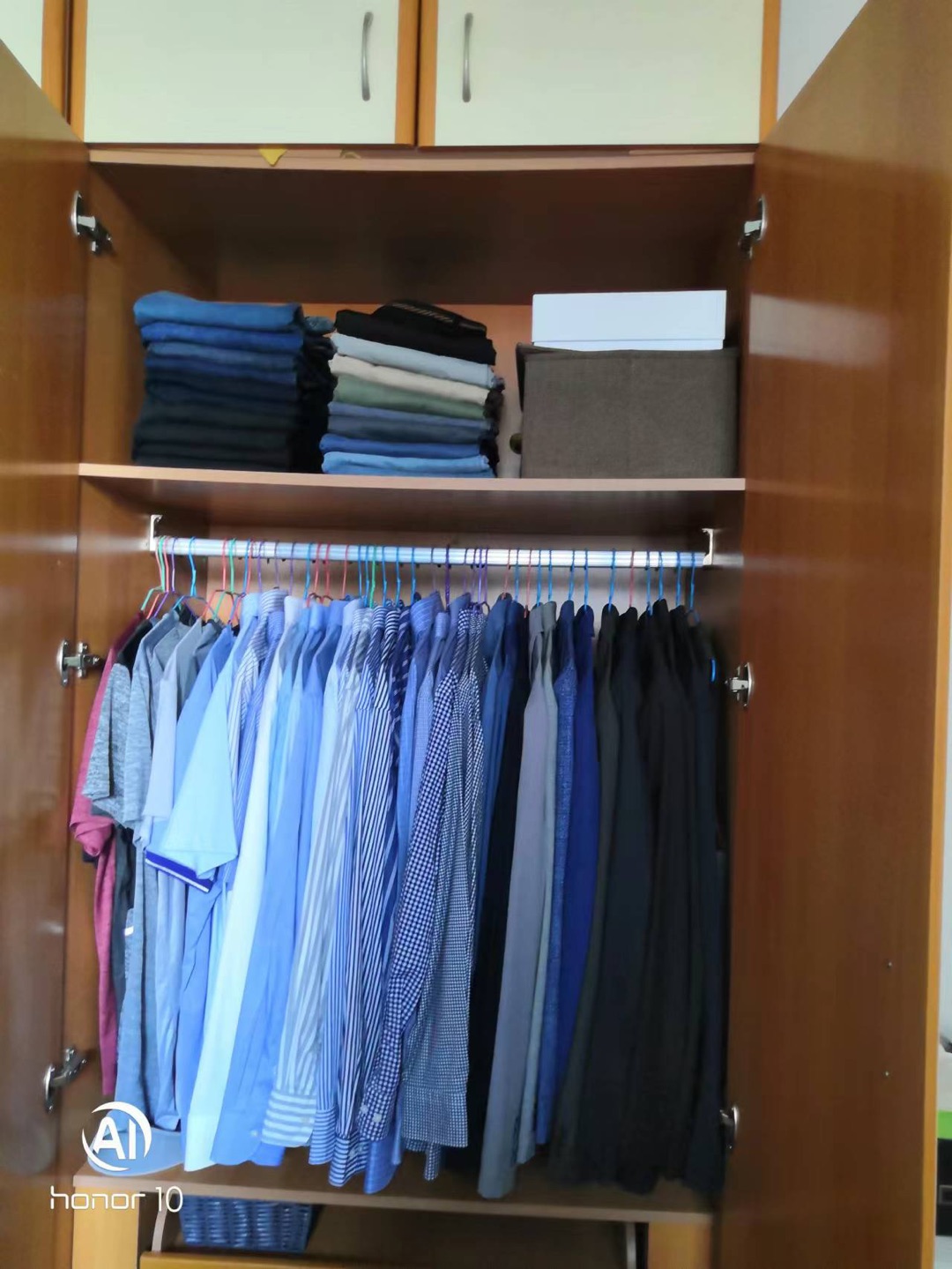 把容易出褶皺的衣服掛起來,例如襯衫、連衣裙、皮衣、西裝、風衣等,短袖,短褲,半身裙等單品疊起來收納最方便。